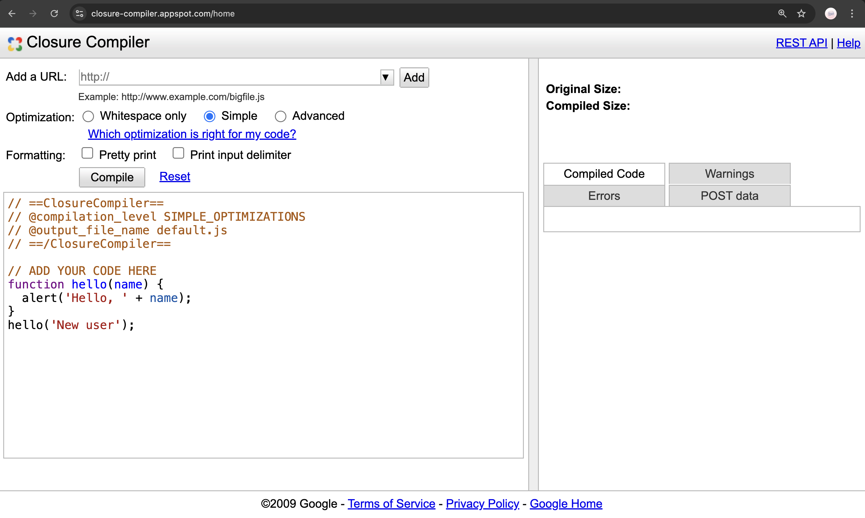Google Closure Compiler is a sophisticated JavaScript optimization tool. Unlike trivial minifiers, it rewrites your code to achieve the maximum possible size reduction. It’s suitable for big projects and apps with the most stringent performance requirements.